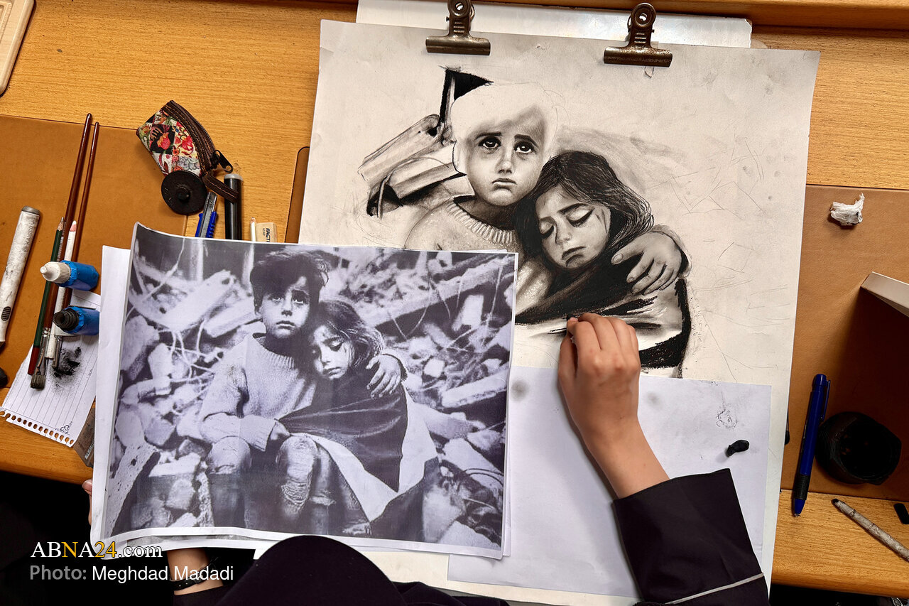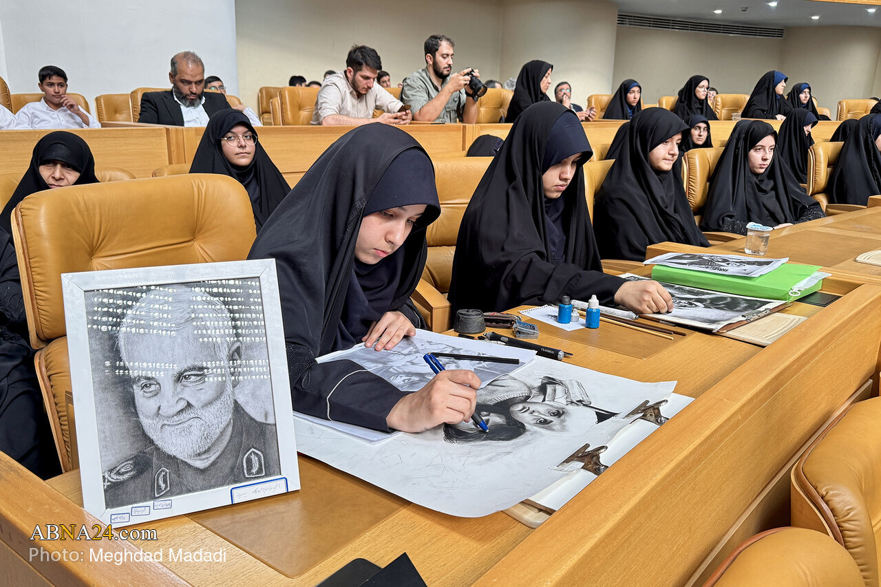 Agensi Berita Antarabangsa Ahlul Bait (ABNA): Di samping Sidang Kemuncak Antarabangsa Ke-8 Berpadu Dengan Kanak-Kanak dan Remaja Palestin pada 20 Mehr 1404 (12 Oktober 2025) di dewan Sidang Kemuncak Ketua-Ketua Negara Tehran, tetamu dan pelawat meluangkan masa untuk melukis gambar bertemakan kanak-kanak Palestin dan personaliti terkenal seperti Haj Qassem, suasana yang mempamerkan lambang kemanusiaan dan gambaran perpaduan global.