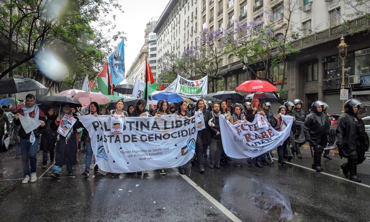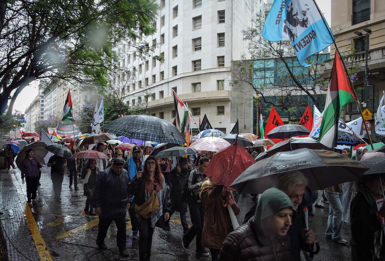 Agensi Berita Antarabangsa Ahlul Bait (ABNA): Serentak dengan Hari Perpaduan Sedunia dengan Rakyat Palestin, para pembantah di Buenos Aires, Argentina, mengutuk pembunuhan beramai-ramai di Gaza, rancangan kolonial Trump, dan pemindahan kedutaan ke Baitulmaqdis yang diduduki.